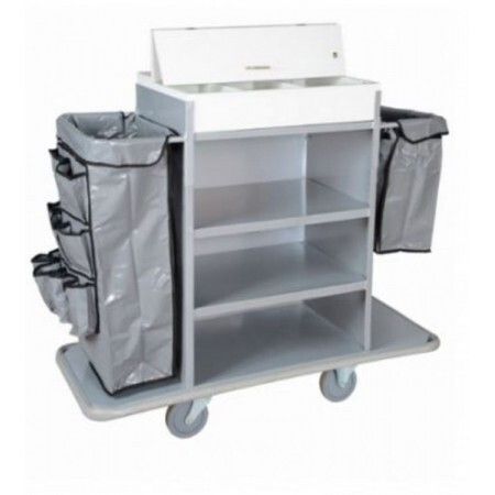 Carrinho para hotel,atende 15 quartos, possui 2 sacos de vinil , medida 1,40 x 0,54 x 1,10 cm rodas de borracha cinza , ideal para pisos lisos ** consulte preço com roda maciça